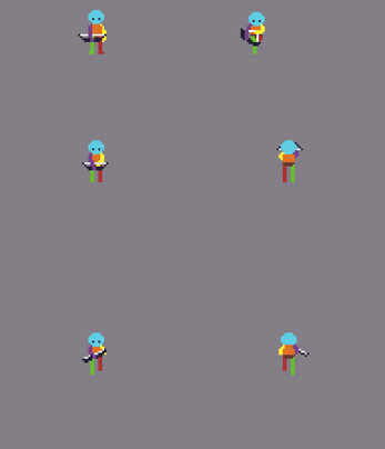 Gracias por los assets, estoy prototipando con ellos y han sido de mucha ayuda. Sería genial si pudieras agregar assets diagonales, para tener las 8 direcciones cubiertas. Me encanta tu trabajo.